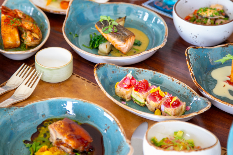 เชฟโรแบร์โต้ กอนซาเลซ อลอนโซ หัวหน้าพ่อครัวประจำห้องอาหาร ได้คัดสรรวัตถุดิบอย่างพิถีพิถัน นำมาปรุงเป็นเมนูเด็ดเพื่อให้คุณได้อิ่มอร่อยแบบไม่อั้น เริ่มต้นด้วยอาหารเรียกน้ำย่อยอย่างสลัดซีฟู้ด 🦐 สลัดปลาหมึกยักษ์ 🦑 และทูน่าทาร์ทาร์ 🐟 แล้วต่อด้วยอาหารจานหลักที่ห้ามพลาด ได้แก่ กุ้งผัดกระเทียมน้ำมันมะกอกกระทะร้อน 🍤 หมูหันสไตล์สเปน 🐖 และเนื้อซี่โครงแกะย่าง 🥩 นอกจากนี้ยังมีปลาหมึกย่างและปลากระพงย่างที่อร่อยไม่แพ้กัน 🐟