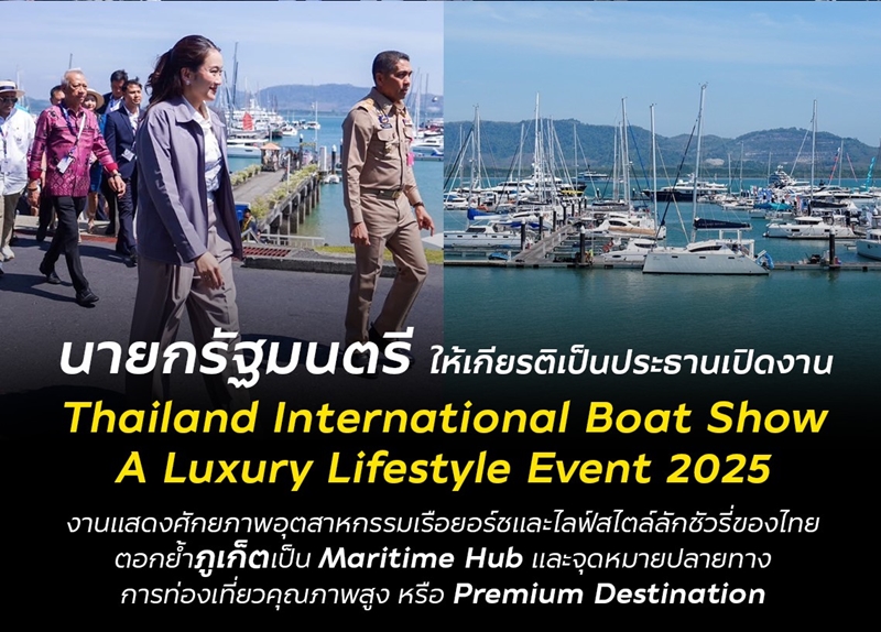 เมื่อวันที่ 9 มกราคม 2568 นางสาวแพทองธาร ชินวัตร นายกรัฐมนตรี ให้เกียรติเป็นประธานในพิธีเปิดงาน Thailand International Boat Show A Luxury Lifestyle Event 2025 อย่างยิ่งใหญ่ ณ Phuket Yacht Haven Marina มหกรรมที่แสดงถึงความเป็นสุดยอดของอุตสาหกรรมเรือยอร์ชและไลฟ์สไตล์ลักชัวรีของประเทศไทย จากความสำเร็จในปีที่ผานมา ทำให้การจัดงานครั้งนี้มีการขยายพื้นที่แสดงเรือยอร์ช สินค้าและบริการต่างๆ เพิ่มขึ้น เป็นสองเท่า เพื่อต้อนรับแบรนด์และธุรกิจต่างๆ จากทั่วโลก มีผู้เข้าชมงานที่เป็นนักท่องเที่ยวกลุ่ม High Net Worth Individual (HNWI) จากทั่วประเทศไทยและเอเชีย เราหวังว่างานนี้จะช่วยยกระดับภูเก็ต และประเทศไทย ให้เป็นศูนย์กลางการล่องเรือยอช์ทเพื่อการพักผ่อนในเอเชีย