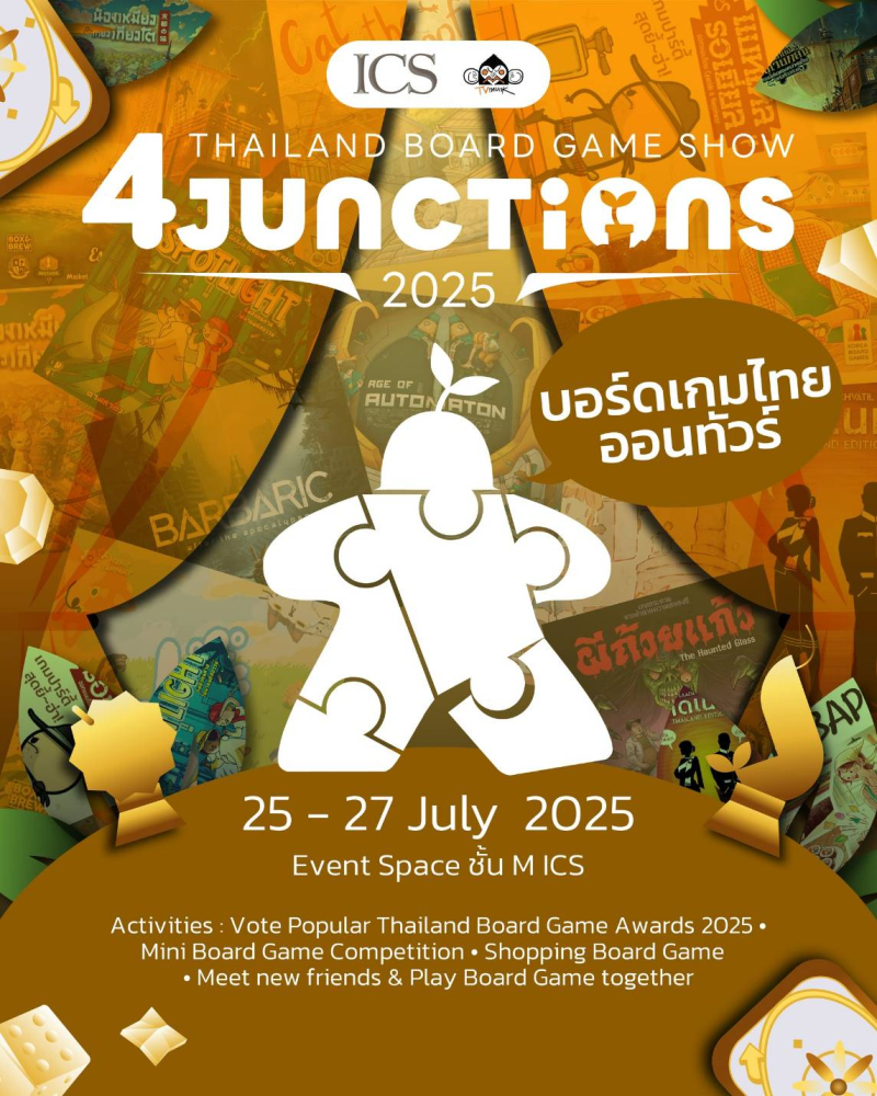 ร่วมกิจกรรม Thailand Board Game Show 4 Junctions 2025 โดยไม่เสียค่าใช้จ่าย ระหว่างวันที่ 25-27 กรกฏาคม 2568 ณ Event Space ชั้น M ICS Lifestyle Complex ตรงข้ามไอคอนสยาม