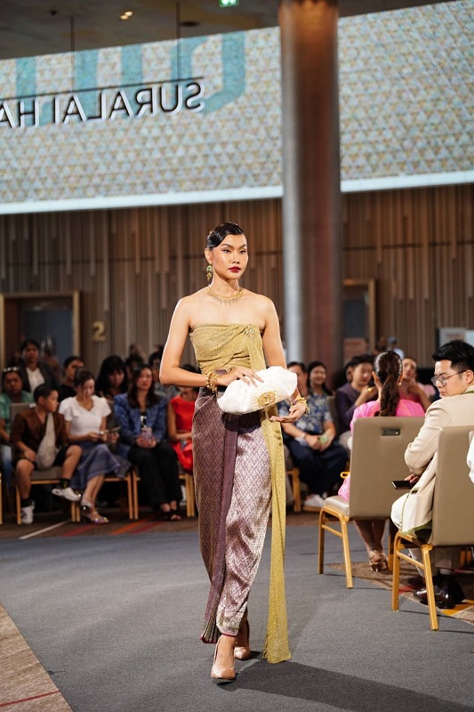 ผลงานไฮไลต์ที่นำเสนอผ่านแฟชั่นโชว์ “S’CRAFT THAI TEXTILE TREASURES: FOUR REGIONS, TIMELESS LEGACY CRAFTSMANSHIP 2025” คือ “Luxe de Siam Exclusive Edit Clutch” กระเป๋าคลัตช์ที่ตกแต่งด้วยสัญลักษณ์นกยูงรำแพนบนผ้าไหมผืนงามจากฝีมือ อาจารย์มีชัย แต้สุจริยา ศิลปินแห่งชาติ สาขาทัศนศิลป์ ผู้พัฒนาลวดลายอันเลื่องชื่ออย่างผ้ากาบบัว ซิ่นมุกจกดาว และก่อตั้งพิพิธภัณฑ์บ้านคำปุน ในจังหวัดอุบลราชธานี และ อาจารย์วีรธรรม ตระกูลเงินไทย ครูศิลป์ของแผ่นดิน บรมครูผ้าไหมไทยผู้ก่อตั้งแบรนด์ “จันทร์โสมา” จากกลุ่มทอผ้ายกทองหมู่บ้านท่าสว่าง จังหวัดสุรินทร์