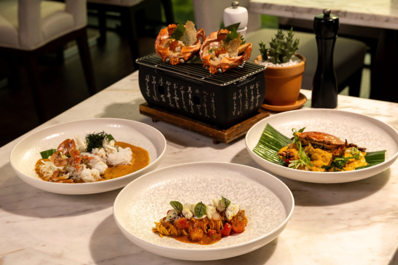เปิดตัววัตถุดิบประจำเดือนกันยายนด้วย “ปู” เชฟมาเตโอ ฟอนทานา และทีมรังสรรค์เมนูที่นำเสนอรสชาติของปูออกมาในหลากหลายรูปแบบ อาทิ สลัดอะโวคาโดกับปูเสิร์ฟคู่น้ำสลัดยูสุ (Avocado and Crab Salad with Yuzu Dressing) คานิมิโซะผสมเนื้อปูและไข่ปลาแซลมอน (Kani Miso with Crab Meat and Ikura) ปูผัดซอสหลากหลายสไตล์หมุนเวียนประจำสัปดาห์ เช่น ซอสพริกไทยดำ ซอสผัดผงกระหรี่ และซอสเปรี้ยวหวาน (Stir-Fried Mud Crab) ตัลลิโอลีนี่ผัดซอสเนื้อปู (Homemade Tagliolini with Crab and Lemon) และเมนูจานหลักอย่าง ขนมจีนน้ำยาแกงปูใบชะพลู (Yellow Curry Crab with Betel Leaf and Fermented Rice Noodle) นอกจากนี้แขกยังเต็มอิ่มกับเมนูโปรดในบรันช์ตามใจชอบ อาทิ ซีฟู้ดทาวเวอร์ โคลด์คัทกับชีสนานาชนิด พิซซ่า และเมนูจานหลักอย่าง หางล็อบสเตอร์บอสตันย่าง เนื้อสันนอกวากิวออสเตรเลีย และมุมของหวานมุมโปรด เป็นต้น