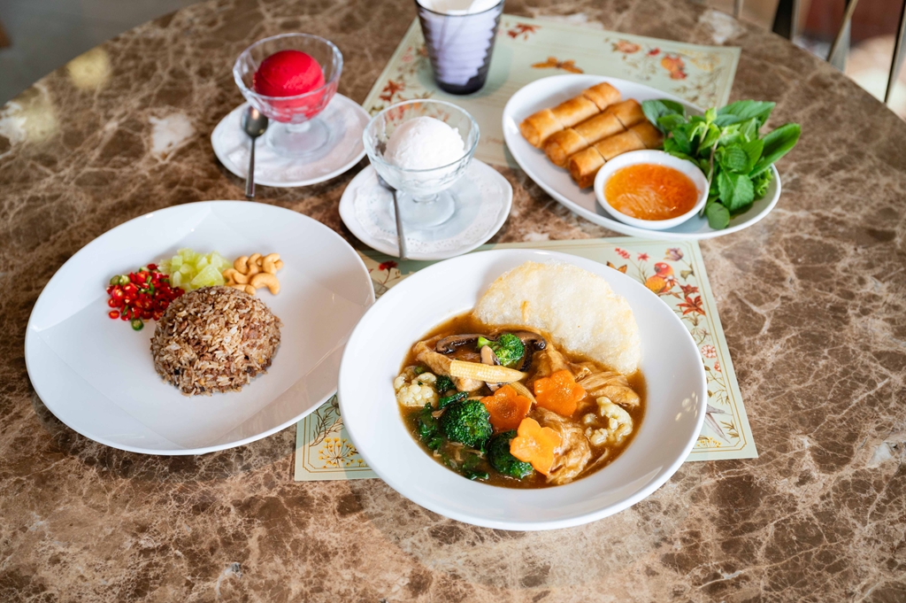 นอกจากนี้ ร้านอาหารชั้นนำในไอคอนสยาม พร้อมเสิร์ฟเมนูพิเศษทั้งสไตล์จีน ไทย ฝรั่ง ให้การรับประทานอาหารเจ