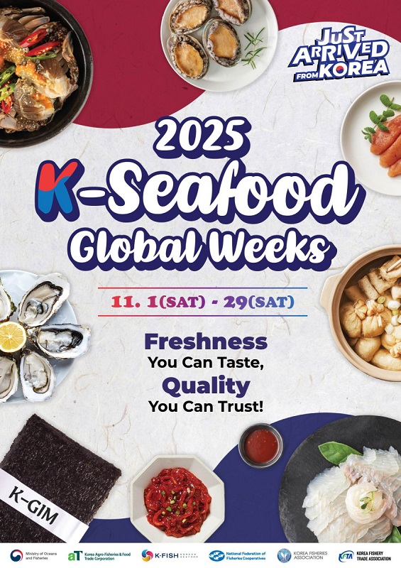 กระทรวงมหาสมุทรและประมงเกาหลี(โดยรัฐมนตรีช็อนแจซู) ร่วมกับ สหกรณ์การประมงแห่งชาติเกาหลี จัดงานสัปดาห์โปรโมทสินค้าอาหารทะเลเกาหลี 2025 (K-Seafood Global Weeks) ตั้งแต่วันที่ 1 พ.ย. จนถึง 29 พ.ย. รวมระยะเวลาประมาณ 1 เดือน เพื่อกระตุ้นการส่งออก และเพิ่มการรับรู้เกี่ยวกับสินค้าอาหารทะเลจากเกาหลีไปทั่วโลก