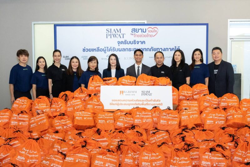 นอกจากนี้ ยังได้มีการส่งมอบถุงยังชีพ ณ จุดรับบริจาคของโครงการ “สยามร่วมใจ ไทยช่วยไทย” ซึ่งเป็นโครงการของกลุ่มบริษัทสยามพิวรรธน์ที่จัดตั้งขึ้นเพื่อช่วยเหลือผู้ประสบภัยพิบัติทั่วประเทศ โดยเฉพาะในพื้นที่ที่ประสบเหตุอุทกภัย โดยมี คุณศิริวงศ์ บวรบุญฤทัย ประธานเจ้าหน้าที่บริหารสายงานการเงินและบัญชี และ คุณเกรียงไกร อยู่ยืน รองกรรมการผู้จัดการใหญ่ สายงานทรัพยากรบุคคล เป็นผู้แทนบริษัท บี.กริม เพาเวอร์ จำกัด (มหาชน) ในการส่งมอบเครื่องอุปโภค–บริโภค ในครั้งนี้