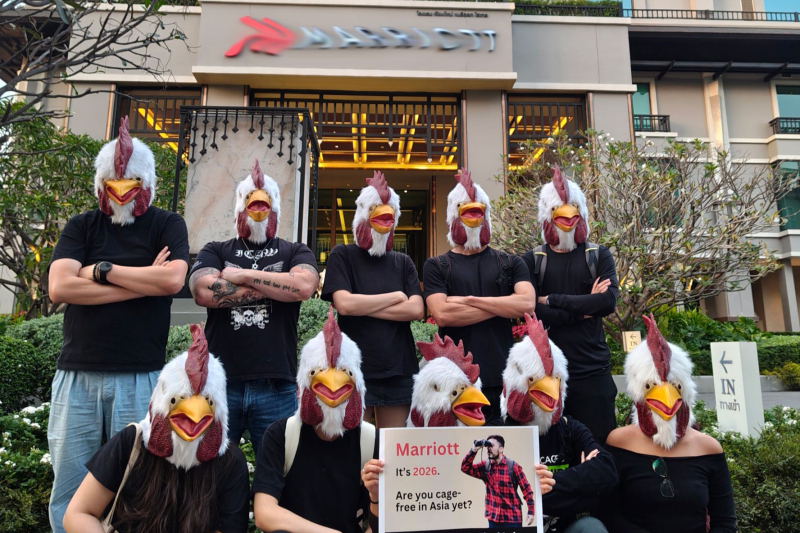 แฟลชม็อบหน้ากากไก่: บริเวณถนนช้างคลาน หน้าโรงแรมแมริออท เพื่อสื่อสารไปยังเครือโรงแรมถึงเป้าหมายการจัดหาไข่ไก่ปลอดกรง 100% ภายในปี 2025 ที่เครือโรงแรมได้ประกาศไว้