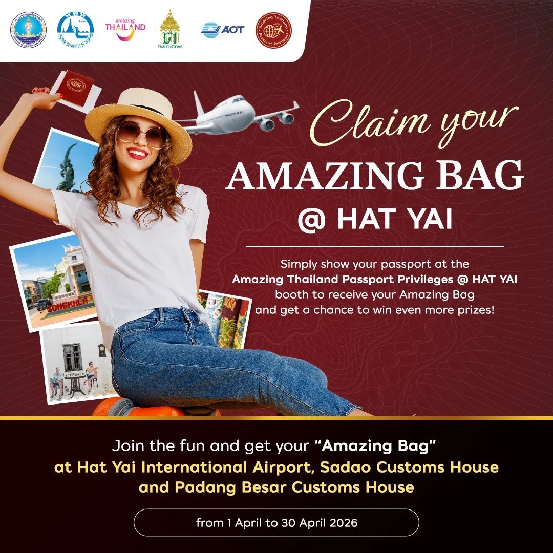 ดีเดย์! 1 เมษายน…ททท. เดินหน้ากิจกรรม Amazing Thailand Passport Privileges @ HAT YAI มอบ“Amazing Bag” แก่นักท่องเที่ยวต่างชาติ มุ่งกระตุ้นฟื้นฟูการท่องเที่ยวภาคใต้
