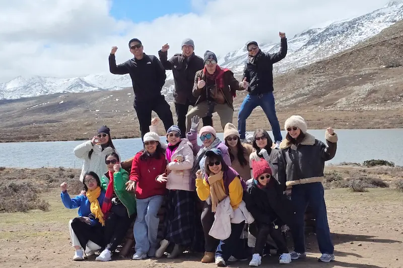 จากนั้นคณะเดินทางต่อผ่านเมืองคังติ้ง แอ่งน้ำสีแดงหงไห่จื่อ จุดชมวิวภูเขากงก้า และทุ่งหญ้าต้ากง ก่อนจะมาถึงเมืองซื่อกูเหนียงในอำเภอเสี่ยวจิน เมื่อวันที่ 13 เมษายน ขณะเยี่ยมชมหุบเขาซวงเฉียว นักท่องเที่ยวชาวไทยได้พบกับหิมะฤดูใบไม้ผลิที่โปรยลงมาจนเปลี่ยนผืนป่าให้กลายเป็นทิวทัศน์ขาวโพลนสุดน่าตื่นตา