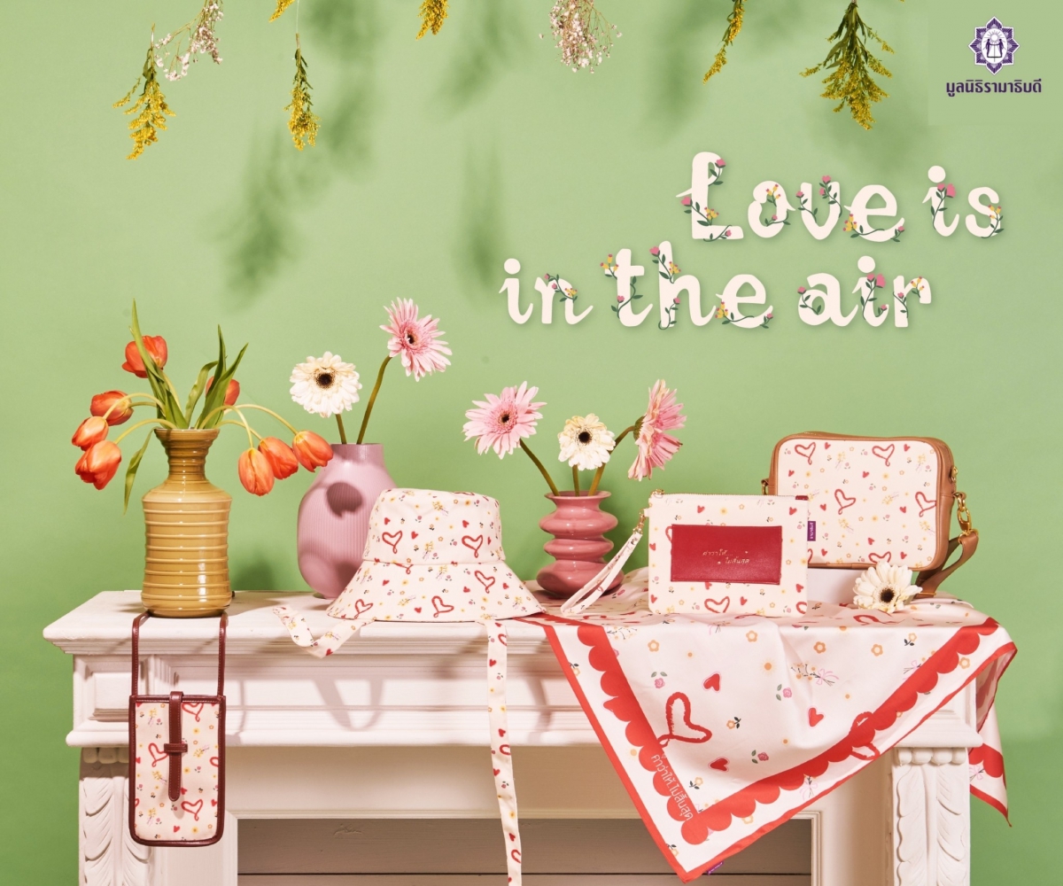 โดยแรงบันดาลใจของคอลเลกชันนี้ “Love is in the air” ได้ตีความหมายจากความรักที่มีอยู่รอบตัวเพื่อเราจะพบกับความสุขได้จากสิ่งเล็ก ๆ น้อย ๆ ประจำวัน ผ่านโทนสีที่ให้ความสดชื่น และอบอุ่นใจให้แก่ผู้ที่ได้พบเจอ ความรู้สึกพิเศษนี้สามารถส่งต่อให้กับคนรักของเราได้อีกด้วย ลายพิมพ์ดอกไม้ผสมผสานกับลายเส้นรูปหัวใจอินฟินิตี้ สัญลักษณ์ประจำมูลนิธิรามาธิบดีฯ ซึ่งเป็นตัวแทนของความรักที่ไม่สิ้นสุด ท่ามกลางภาวะต่าง ๆ ที่ต้องเจอตอนนี้ ให้ความรัก กำลังใจ และความอบอุ่นโอบล้อมรอบเราไว้ เพื่อส่งต่อความรู้สึกดี ๆ ให้แก่ตัวเราและคนรอบข้าง