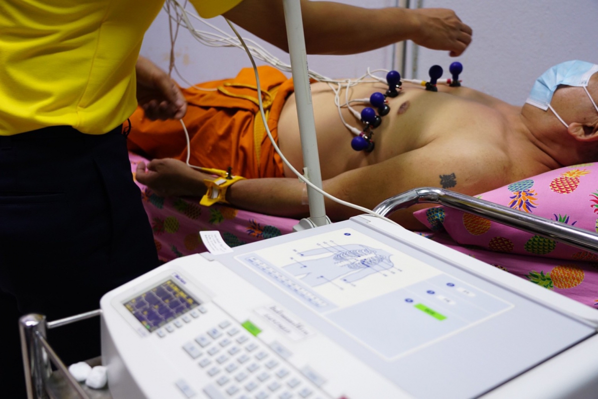 นอกจากนี้ยังมีกิจกรรม ร่วมกันห่มผ้าพระธาตุ มีพระสงฆ์ร่วมสวดเจริญพระพุทธมนต์ ที่วัดมหาธาตุวรวิหาร จังหวัดราชบุรี เพื่อความเป็นสิริมงคล อีกด้วย คุณยุพา ทวีวัฒนะกิจบวร ผู้แทนหน่วยสนับสนุนแพทย์อาสาฯ ได้กล่าวเพิ่มเติม ในช่วงเช้ามีประกอบพิธีบวงสรวงที่ศาลเจ้าพ่อหลักเมือง จังหวัดราชบุรี พร้อมออกหน่วยแพทย์อาสาสำหรับพระภิกษุสงฆ์ ให้บริการพระสงฆ์ เณร แม่ชี จำนวนกว่า 682 รูป ก่อนออกหน่วยแพทย์อาสาใหญ่พร้อมกันทั้ง 30 คลินิก