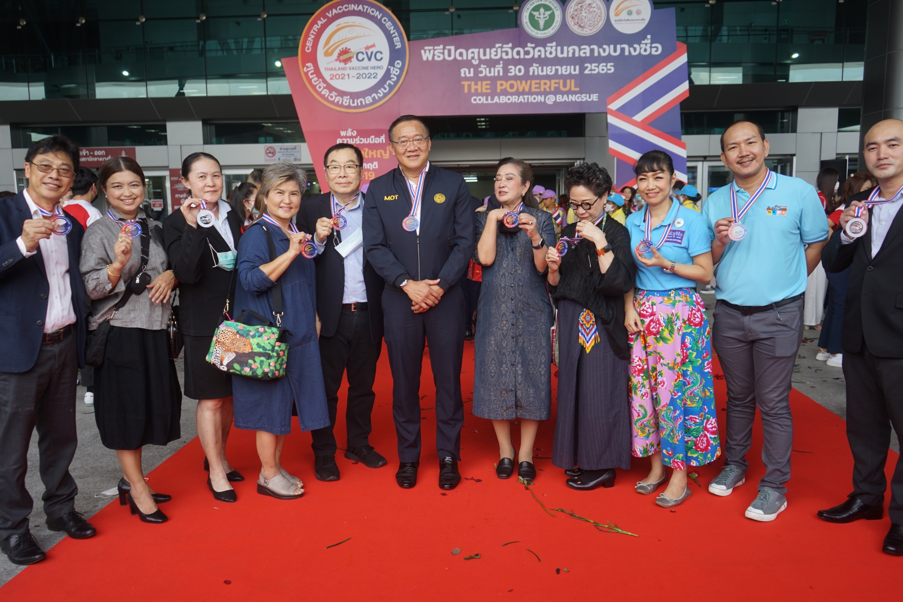 โดยช่วงสุดท้ายของพิธี ผู้บริหารได้ร่วมกันมอบดอกกุหลาบสีแดง และเหรียญ ‘Vaccine Hero‘ ให้กับหน่วยงานองค์กรภาครัฐ และเอกชน รวมถึงเจ้าหน้าที่ประจำศูนย์ และส่งเจ้าหน้าที่กลับบ้าน หลังจากศูนย์ฉีดวัคซีนดังกล่าวเปิดให้บริการฉีดวัคซีนป้องกันโรคโควิด-19 มาเป็นเวลา 1 ปีเศษ