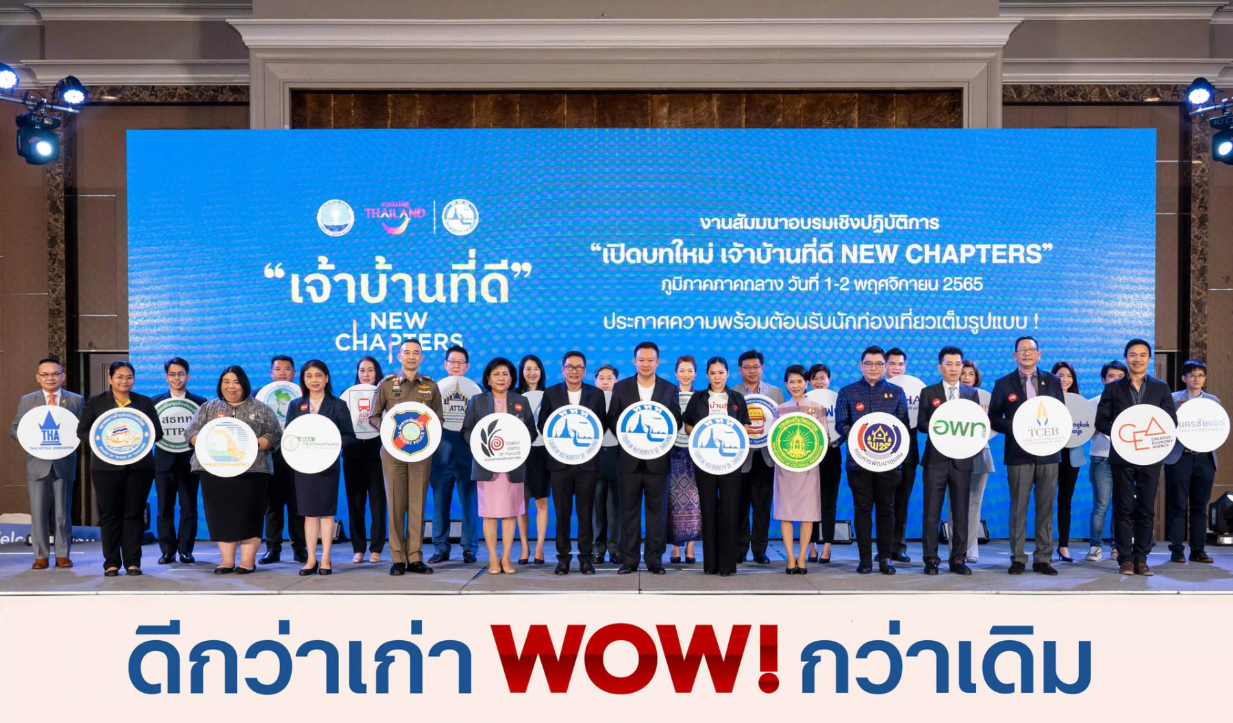 การท่องเที่ยวแห่งประเทศไทย (ททท.) จัดงานประชุมอบรมเชิงปฏิบัติการโครงการ “เจ้าบ้านที่ดี” NEW CHAPTERS ระหว่างวันที่ 1–2 พฤศจิกายน 2565 ในพื้นที่ 5 ภูมิภาคทั่วประเทศ ซึ่งจัดพิธีเปิดงานฯ ในวันที่ 1 พฤศจิกายน 2565 ณ โรงแรมเบอร์เคลีย์ ประตูน้ำ กรุงเทพฯ โดยได้รับเกียรติจากนายพิพัฒน์ รัชกิจประการ รัฐมนตรีว่าการกระทรวงการท่องเที่ยวและกีฬา เป็นประธานในพิธีเปิดงานประชุมอบรมฯ โดยมีนายยุทธศักดิ์ สุภสร ผู้ว่าการ ททท. และนายอภิชัย ฉัตรเฉลิมกิจ รองผู้ว่าการด้านสินค้าและธุรกิจท่องเที่ยว ททท. และ นส.ฐาปนีย์ เกียรติไพบูลย์ รองผู้ว่าการด้านตลาดในประเทศ ททท. ให้การต้อนรับ พร้อมถ่ายทอดสดในรูปแบบ Live Streaming ไปยังพื้นที่จัดกิจกรรมในอีก 4 ภูมิภาค เพื่อเป็นการเตรียมความพร้อมภาคอุตสาหกรรมท่องเที่ยวและชุมชนท้องถิ่นมุ่งสู่การท่องเที่ยว NEXT NORMAL