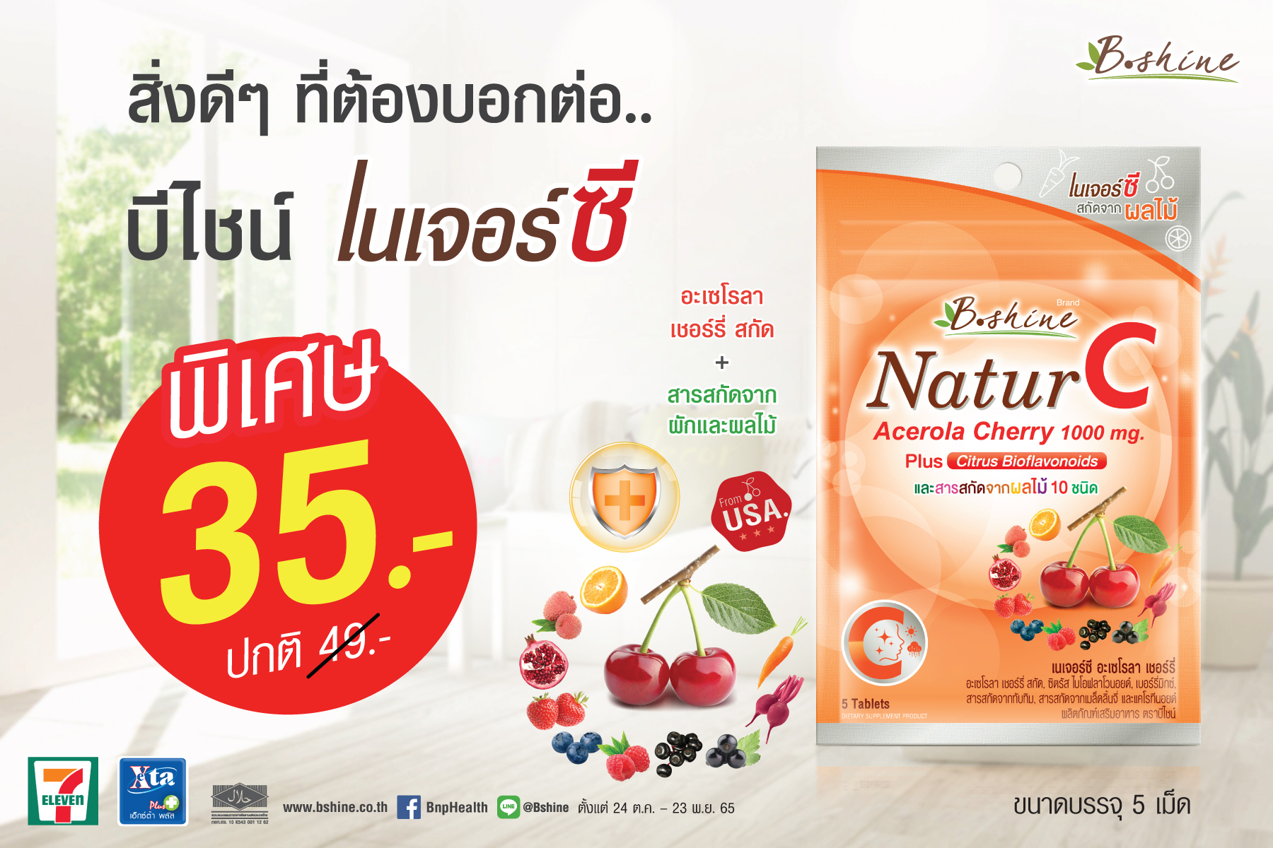 “บีไชน์ เนเจอร์ซี” วิตามินซีธรรมชาติ จัดโปรพิเศษ ขนาดซองพกพา เหลือซองละ 35 บาท ที่เซเว่น อีเลฟเว่น ทุกสาขา