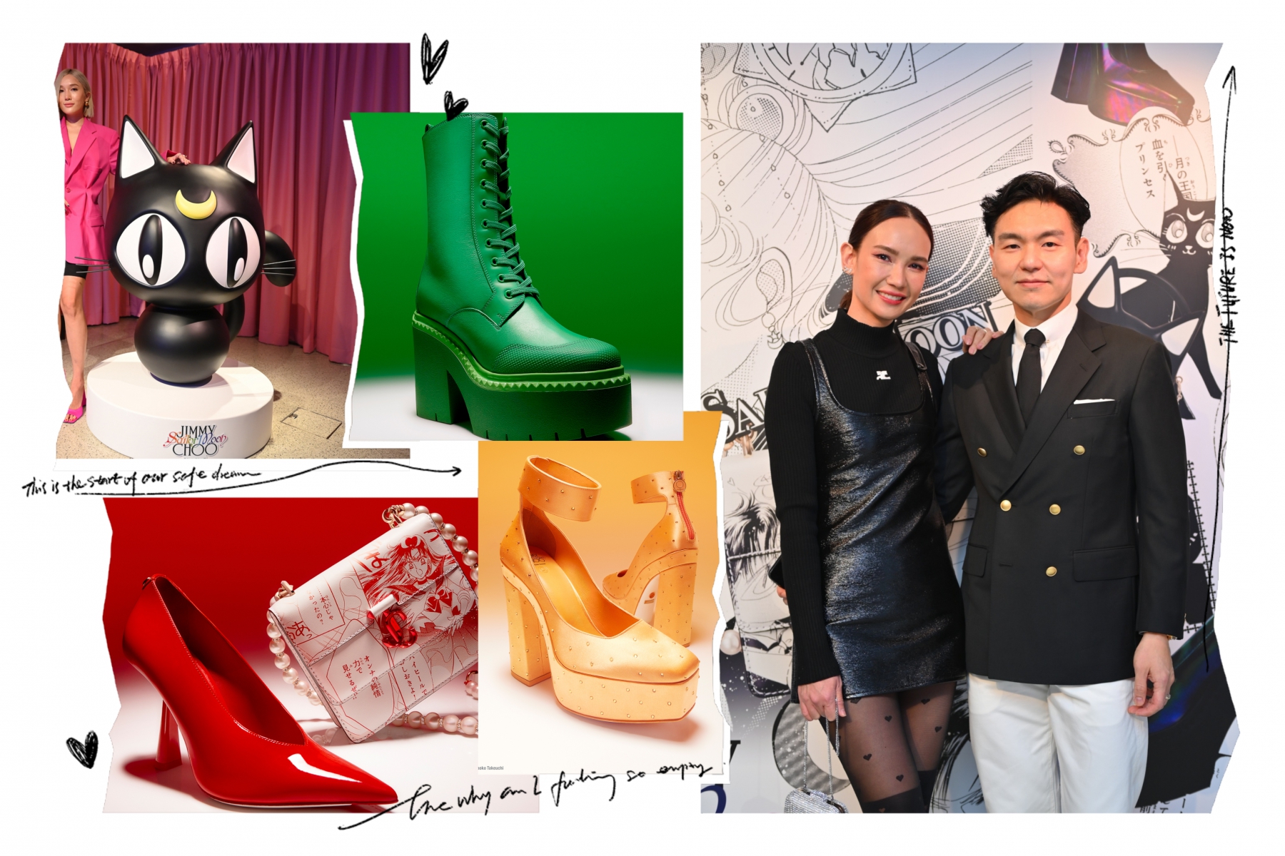 เริ่มต้นด้วยการสร้างคาแรกเตอร์จากการ์ตูนมังงะหญิง ความเป็นผู้หญิง และ พลังหญิง คือ หัวใจของเซเลอร์มูนผู้พิทักษ์แห่งดวงจันทร์ที่ปรากฏบนรองเท้าทุกคู่ของจิมมี่ ชู การเคลื่อนไหวที่มีพลังและไดนามิกคือ ตัวแทนของผู้หญิง โดยคอลเลกชั่น ‘Jimmy Choo X Pretty Guardian Sailor Moon’ นำคาแรกเตอร์ของเหล่าผู้พิทักษ์ ซึ่งเป็นตัวละครหลักมาตีความเป็นธีมให้กับเหล่าผลงานรองเท้า กระเป๋า และแอ็กเซสเซอรี่ ไม่ว่าจะเป็น เซเลอร์เมอคิวรี เซเลอร์มารส์ เซเลอร์จูปิเตอร์ เซเลอร์วีนัส รวมถึง ลูน่า แมวเมนเทอร์ และผู้พิทักษ์แห่งดวงจันทร์เซเลอร์มูน ที่นาโอโกะ ทาเคชิ ได้วาดจินตนาการออกมาทั้งหมดได้อย่างงดงาม