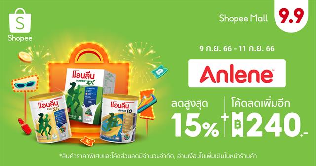 ร่วมฉลองมหกรรมที่ยิ่งใหญ่ที่สุด Shopee 9.9 วันช้อปแห่งปี แอนลีนถือโอกาสนี้ส่งต่อความห่วงใยให้คนในครอบครัวที่คุณรัก ด้วยส่วนลดสูงสุด 15% และ โค้ดลดเพิ่มอีก 240 บาท[1] ในช่วงมหกรรม Shopee 9.9 วันช้อปแห่งปี ตั้งแต่ 4 – 11 กันยายน 2566