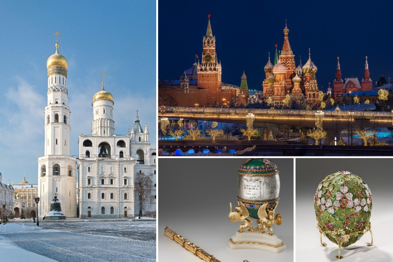 มอสโกเครมลิน ถูกจัดให้เป็นสัญลักษณ์ของประเทศรัสเซีย ประกอบด้วย พิพิธภัณฑ์ประวัติศาสตร์และวัฒนธรรมแห่งรัฐมอสโกเครมลิน รวมถึงหอสมบัติของราชวงศ์ในพิพิธภัณฑ์อาร์เมอรี่แชมเบอร์ และจัตุรัสวิหารลานกว้างที่ประกอบด้วย โบสถ์อัสสัมชัญ (Assumption) โบสถ์อาร์คแองเจิล (Archangel) และมหาวิหารแอนนันชิเอชั่น (Annunciation) โบสถ์พระแม่มารีย์ (the Church of Laying Our Lady’s Holy Robe) โบสถ์พระสังฆราชกับและอัครสาวกทั้งสิบสอง (Patriarch’s Palace with the Twelve Apostles’ Church) และหอระฆังของพระ เจ้าซาร์อีวานมหาราช (Ivan the Great’ Bell Tower)