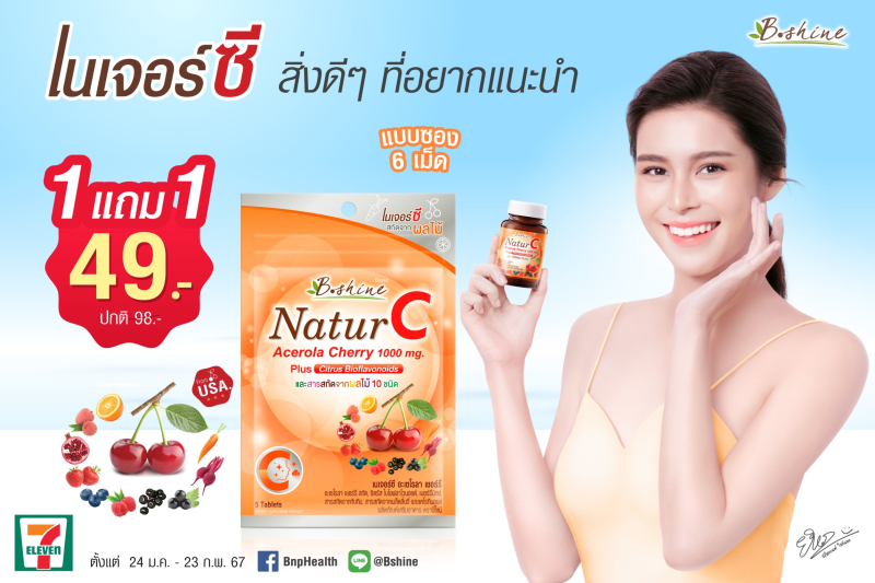 “บีไชน์ เนเจอร์ซี” วิตามินซีธรรมชาติ แบบซองพกพาสะดวก จัดโปรลดสุดคุ้ม ซื้อ 1 แถม 1 เพียง 49 บาท ที่เซเว่น อีเลฟเว่น ทั่วประเทศ