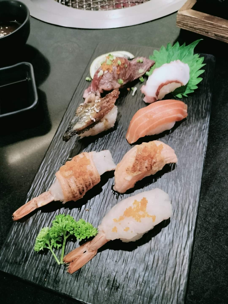 ในไลน์บุฟเฟต์มีรายการอาหารให้เลือกมากกว่า 100 รายการ ที่คัดสรรมาแล้วว่าเป็นญี่ปุ่นแบบแท้ ๆ รสชาติถูกปากคนไทย อาทิ เนื้อวัวนำเข้าจากต่างประเทศ JP, AUS, US มีเอกสารรับรองชัดเจนตรวจสอบที่มาได้จริง อาหารทะเลสด ๆ กุ้งแม่น้ำ หอยนางรม หอยแมลงภู่ หอยเซลล์ หรือจะเป็น ซูชิ ซาชิมิ ก็ยกขบวนมาเต็มแม็ก ทั้ง Salmon, Oyster, Ikura, Hamaji, Tuna, Unagi, Hokkigai และอีกเพียบ กินได้แบบเต็มอิ่ม 2 ชั่วโมงเต็ม โดยบุฟเฟต์มี 4 แบบ ให้เลือกอร่อย Supreme Buffet ราคา 1,499 net, Platinum Buffet ราคา 999 net, Gold Buffet ราคา 799 net และ Silver Buffet ราคา 499 net
